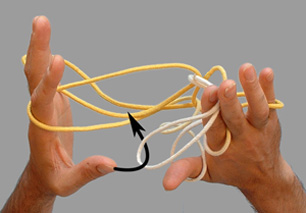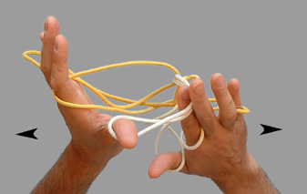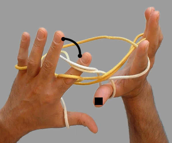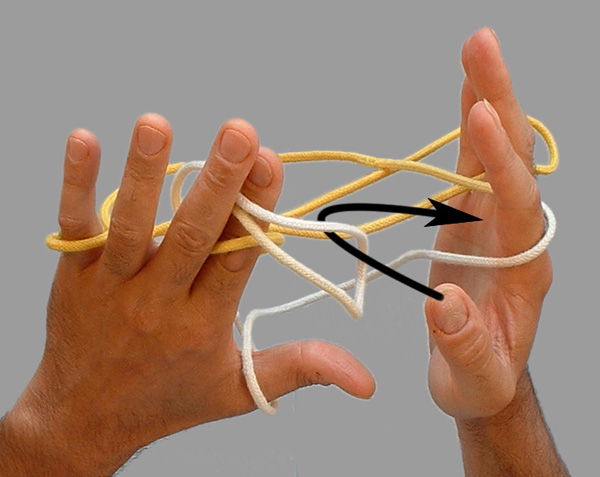 Distally insert L2 into R2 loop. Pass L2 away from you distal to 5 loop, |