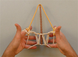 | Distally, insert 2 into 5 loops, hook up 2n strings. |